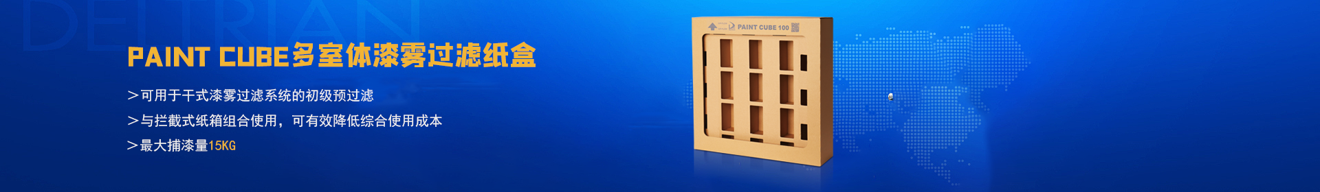 PAINT CUBE多室體迷宮干式紙箱漆霧過濾器可用于干式漆霧過濾系統的初級過濾,是蘇州岱創過濾系統有限公司的專利產品。